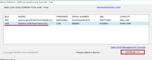 Seleccionan el segundo archivo de descarga, tal y como se muestra en la imagen anterior. Luego solo tienen que elegir la unidad(micro SD, disco duro, USB, etc) que quieren formatear, una vez que lo hayan seleccionado solo hacen clic en el botón de "continue"