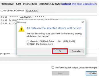 Para finalizar solo tienen que hacer seleccionar y dar clic en  "format this device" y después solo dar en que "SI"para que empiece el programa a reparar el dispositivo de almacenamiento.